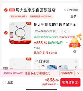 周大生旺仔手绳795克价