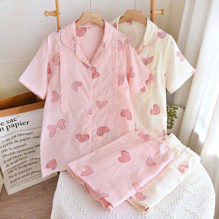 夏季纯棉纱布月子服短袖短裤孕妇睡衣产妇产后网红哺乳衣薄款7月8