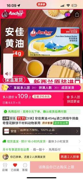 9:/⇥PjPAEXZqSYy61⇤ 复制并打开拼多多APP,109.2元拼团购买【3块】安佳黄油454g进口烘焙牛排曲奇...,仅剩2个名额