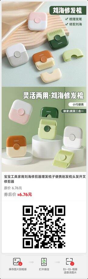 宝宝工具家用刘海修剪器理发梳子便携削发梳头发开叉修剪器【原价】6.76【券后价】6.76【下单链接】https://p.pinduoduo.com/FSO8eJww?sc=EFAC-----------------------点击链接即可购买更多好物请点击:https://p.pinduoduo.com/ITk8u0sn?sc=EFAC