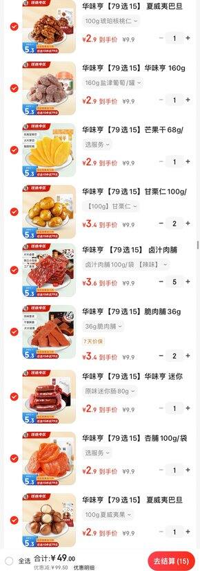良品铺子3.7/件;百草味3.9/件;三只松鼠2.5/件;周黑鸭锁鲜装8.98/盒;华味亨4/件;法丽兹2.7-3.26/件;来伊份3.25/件;徐福记12.9/件;;好想你8.3/件;无穷7.7/件