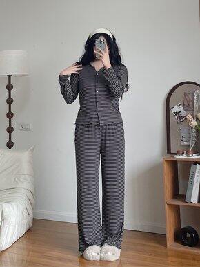 ),尺码L,穿上刚好,睡衣弹力很大,穿上软糯舒服,居家穿真的很不错,而且裤子设计了口袋,放个手机🔑很方便,松紧腰围,不挑人哦!个人觉得版型还挺显瘦的。 ...