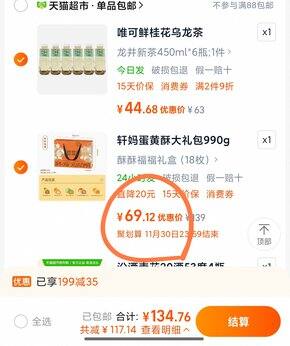 轩妈蛋黄酥18枚69r、高洁丝安心裤16条21r