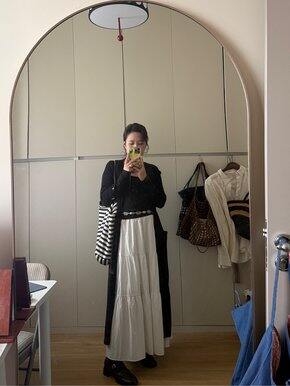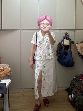 自从胖了以后很久没在网上买衣服了,这套买的L码,裙子刚好合适,肚腩被上衣的长度挡住了刚好看不到。这套太多带子了,我剪了上衣最后一条带子、裙子的系带全剪了。
