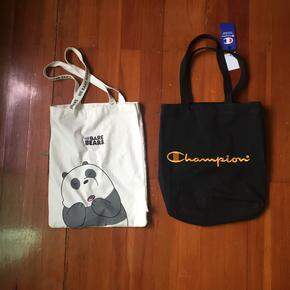 团了champion的帆布包包,想写个反馈黑的是我这次团的包,白的是在某实体店买的,想做个比较白的更长,黑的更宽,所以面积应该差不多白的包的扣子是塑料的,团的这款是铁的白包是单层布,更软,团的这款是双层布,比较硬包内面的商标,有些线头,有点糙比白色那款包包,多了内里两个小包,可以放手机, ...