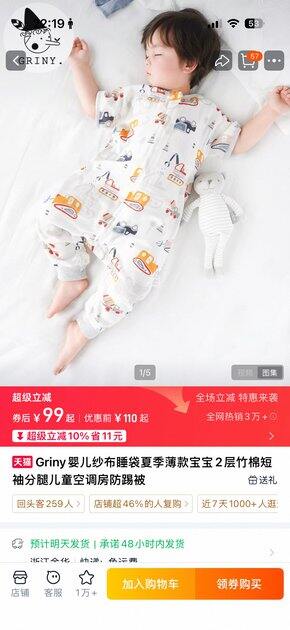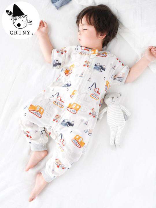 磨砂婴儿纱布睡袋夏季薄婴儿2层竹棉短袖裂腿儿童空调房防踢被