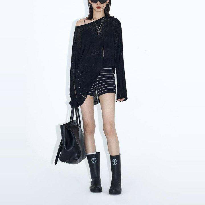 ourhour 抽丝破洞 白色黑色微透镂空宽松针织罩衫 女春设计感上衣