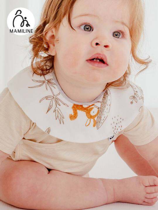 MAMILINE竹棉纱布婴儿小围嘴男女宝宝口水巾防吐奶新生儿两条装