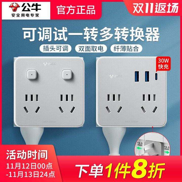 公牛插座转换器多孔一转四扩展插头多功能床头电源排延长线多插位