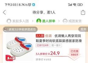 5:/⇥aFLewKcnDRmDR⇤ 复制并打开拼多多APP,24.9元拼团购买优调懒人两穿洞洞鞋夏季时尚软底踩屎感居家防滑拖鞋女外穿沙滩鞋,仅剩1个名额
