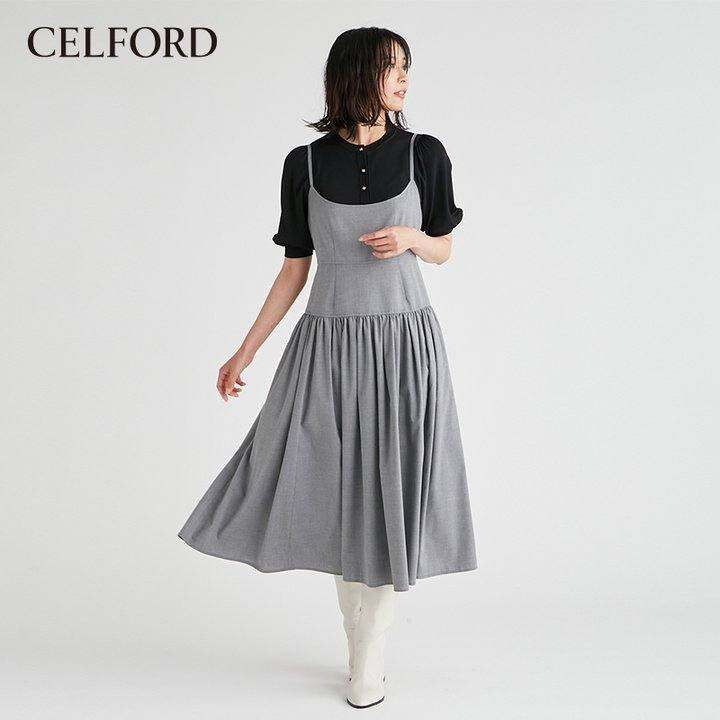 CELFORD2023秋冬新品 百搭休闲宽松抽褶A字吊带连衣裙CWFO234105