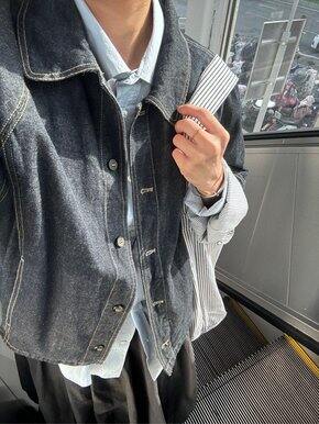 miluroom米鹿牛仔翻领单排扣外套2024年秋季条纹卷边拼接宽松廓形