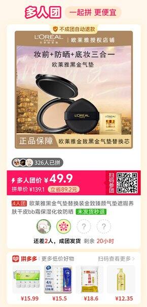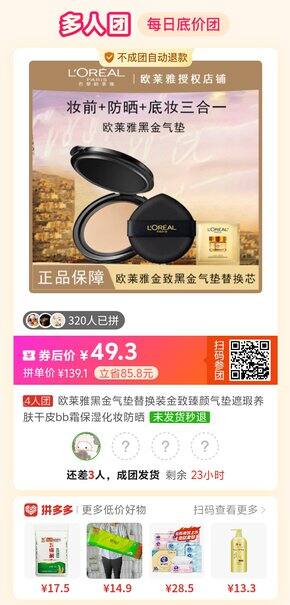 【新年礼物】欧莱雅黑金气垫限定版贝母遮瑕干皮防晒不脱妆奶润女