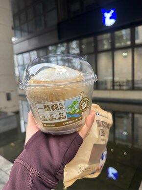 新的一周用一颗椰子蛋开启刚拿到的时候表面都是冰碴运气不错 赶上这颗叶子肉软弹很好吃午餐食堂晚餐 香蕉奶昔 巧克力今天练臀斜坡走40分钟清明节行程确定