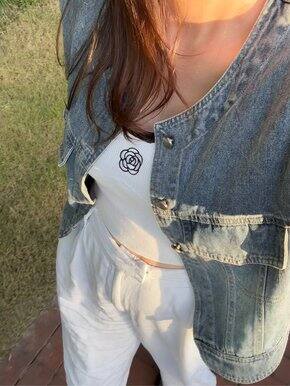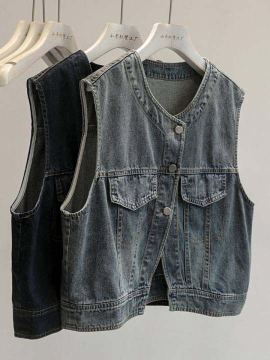 潮货推荐!2024春季新款时髦复古牛仔马甲外套女短款无袖坎肩上衣