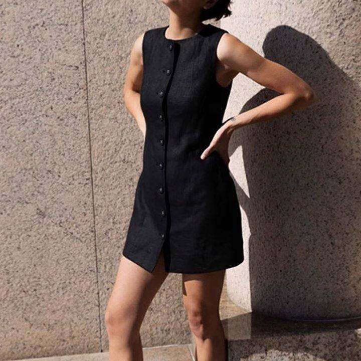 澳洲轻奢小众设计师SE*,1OO%亚麻,单排扣短洋装 25062977