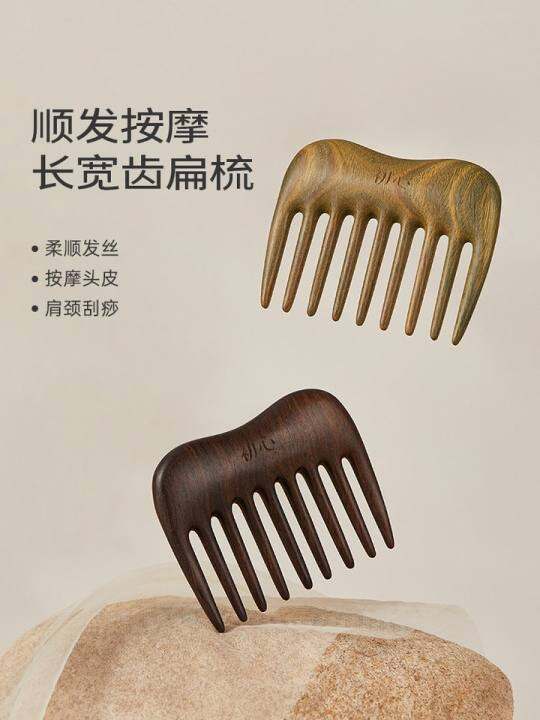 初心檀木梳子宽齿按摩梳头部经络梳天然绿檀木梳家用宽齿头皮刮痧
