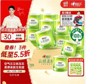 先跳转京东APP领200-20券https://u.jd.com/D19CUyj【🚚JD自营】心相印 云感柔肤 有芯卷纸 4层110g*30卷https://3.cn/2hz-wY15————🔴拍3件94.4元;新客再减3元*赠京东家政2h券 非家政区兑30元京豆*才折0.68元/卷;赠品限量 速度了[机智]