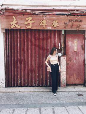 字母背心+高腰阔腿裤+阿迪达斯一脚蹬 其实如果配黑色小裙子、纱裙会更好看 但是我怕晒就没穿裙子
