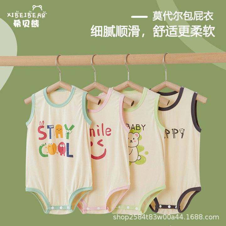 宝宝背心三角包屁衣莫代尔夏季薄款护肚婴幼儿连体衣无袖睡衣夏装