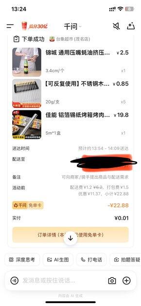 一起来薅羊毛,下载千问App,然后扫图2二维码就可以领一张¥25的免单券,可以买生活用品,酒水牛奶、鞋袜、外卖都可以。选配送费低的商店更划算。