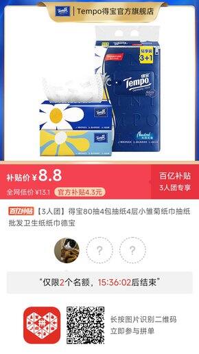 拼德宝餐巾纸 💰8.8/4包