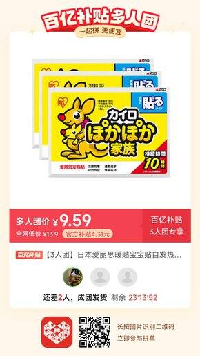7:/⇥vaECxzXTawszE⇤ 复制并打开拼多多APP,9.59元购买百亿补贴【3人团】日本爱丽思暖贴宝宝贴自发热暖身贴保暖贴暖足贴鞋垫热敷帖暖手宝,仅剩2个名额
