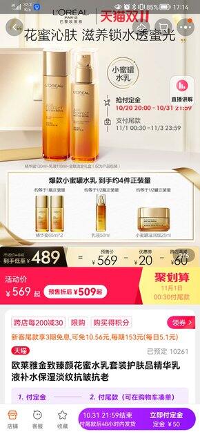 这是昨天晚上开的预售这是今天晚上+7直播间的今天晚上的,不仅多了25ml的小蜜罐,还便宜了20块钱!我要今天晚上买这个,到时候付了尾款把上面那个预售的退了!