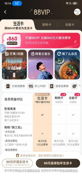问下广大路友:88vip我想开通生活卡,是包年还是一次性?另外,我要是想出各项权益的话,是可以直接把手机号填对方的吗?还是让他们登我的账号?