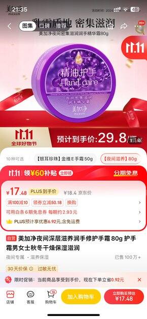 美加净夜间深层滋润滋养润手修护霜舒缓密集保湿呵护正品80g