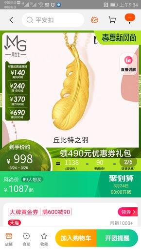 周生生羽毛吊坠只要700多到手