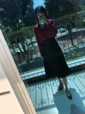 衣服收到非常满意,感觉性价比超级高的!155 80因为现在在培训,没有镜子,所以只能这样拍啦,看不清楚的话要调亮一点就OK的。红色衬衫质量手感不错,有少量线头,具体颜色比较像对镜子这一张,裙子很满意,是很厚实的雪纺。一整套下来很喜欢
