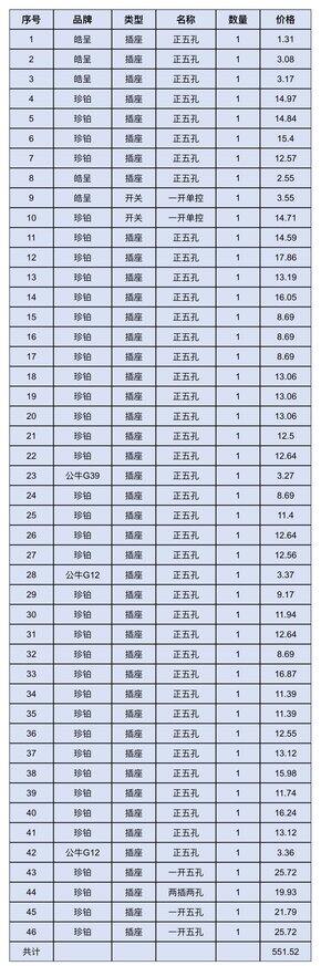 装修贴 | 开关和插座,花费1450元(62个插座和9个开关)