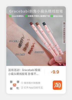 最近买到的宝藏,因为一直用这个牌子的眉笔很不错,回购时顺手带了只眼线胶笔,没想到巨好用啊!很好上色,砍刀笔头,适合新手,不用太用力就能画好,而且不容易晕妆。不知道为啥上传不了链接,只能分享个图了,店铺不做推荐,随便买划算的就好。