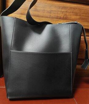 高级质感牛皮腋下水桶包女真皮托特包通勤大容量单肩包宽带法棍包