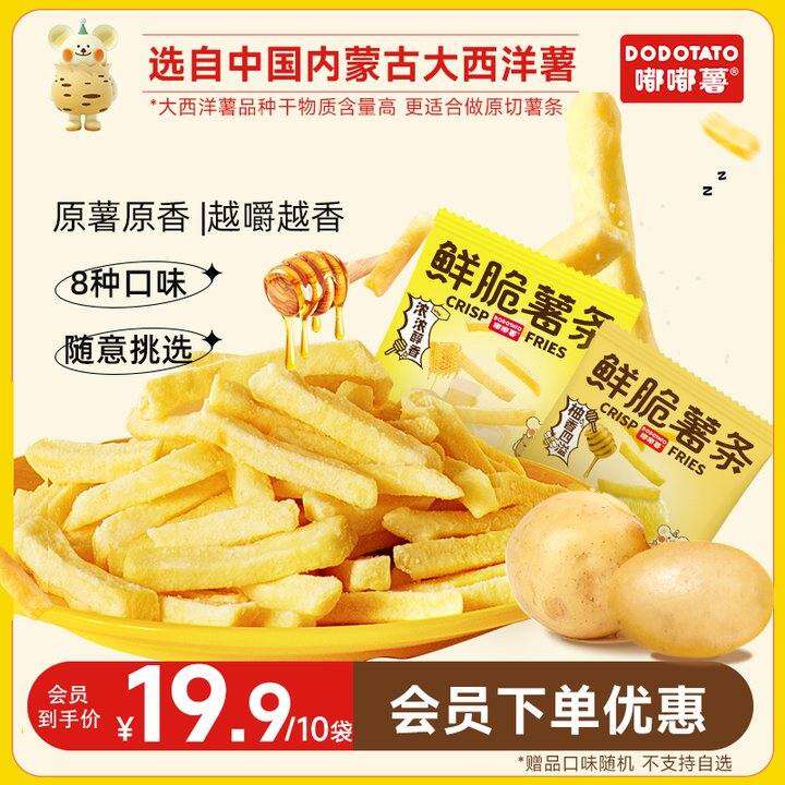 嘟嘟薯原切香脆薯条20g独立包装健康办公室零食小吃休闲食品薯片