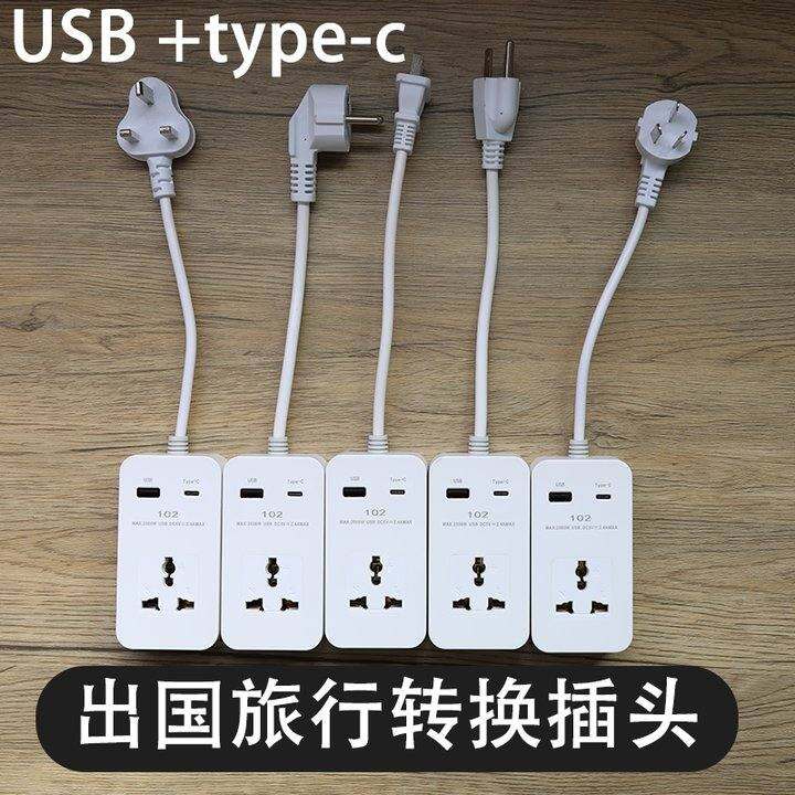 出国旅行插座排插转换插头带线迷你款英标美标欧标万用type-c旅游