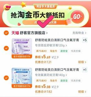 💰5r/支 舒客含fu专效牙膏120g大支装