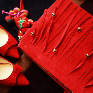 PECO单肩斜跨包红色流苏包女包2014最新真皮磨砂皮流苏复古包包