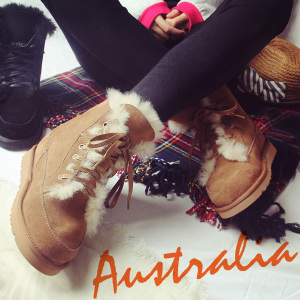 2014冬季新款 澳洲羊皮毛一体内增高雪地靴系带高跟真皮短筒靴 女
