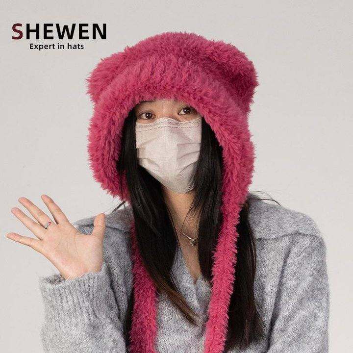 加厚小熊针织帽雷锋帽系带草莓熊保暖护耳帽可爱韩版长白山旅游