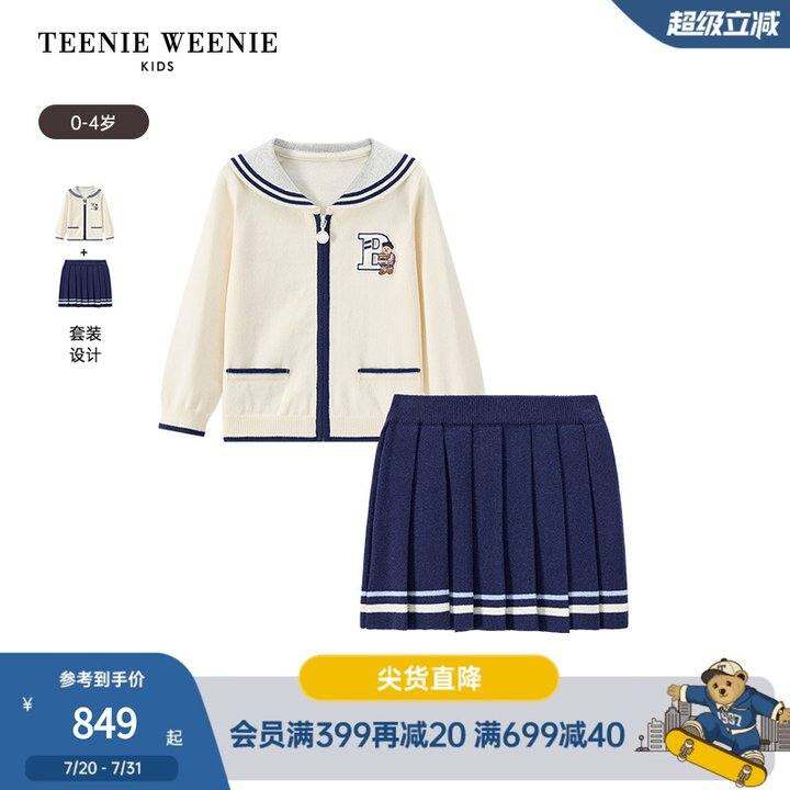 TeenieWeenie Kids小熊童装25新款秋季女宝宝学院针织百褶裙套装