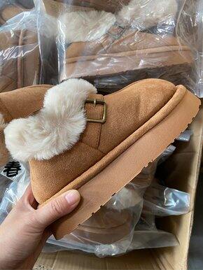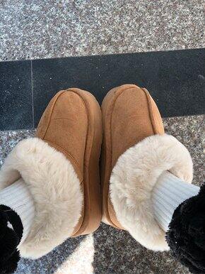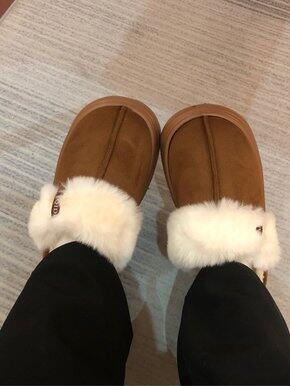冬季女士厚底毛绒包跟棉拖鞋增高保暖外穿家居