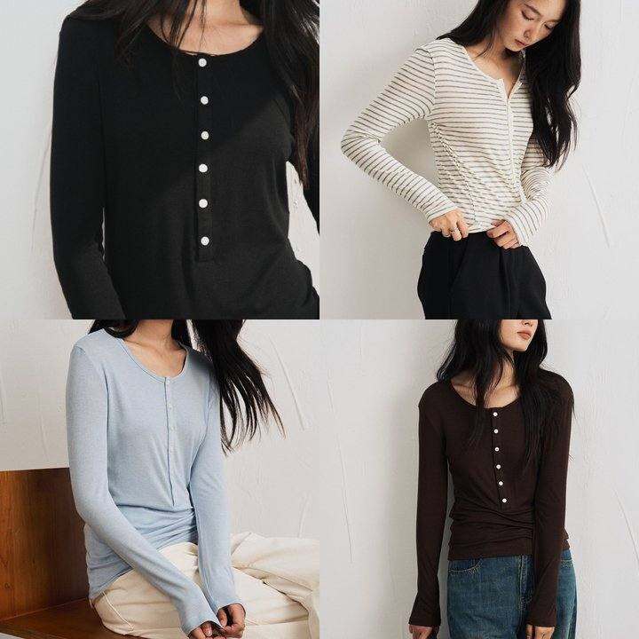 9.8【47莱赛尔】小山羊半粒扣绵羊毛圆领长袖打底衫