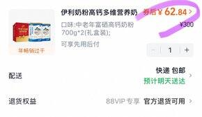 💰叠加13r淘金币后62.84包邮💰-1️⃣伊利中老年奶粉富硒高钙成人奶粉700g*2礼盒,领链接内30券(部分号进入商品页面后会被砸9.6折券)https://m.tb.cn/h.S53Shn9 ,0fu
