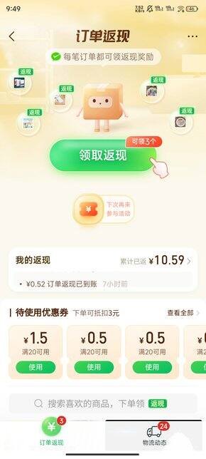 买三免三现在是几天可以有啊,我昨天凌晨下了一单,然后给了优惠券,今天凌晨去看说我今天参加过了。。。。