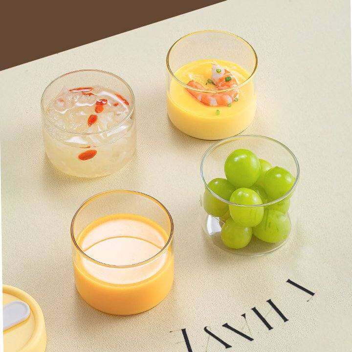 买了一组图片上的燕麦杯(pdd搜同款,4个400ml一共10r左右),用来做些布丁奶冻之类的甜品,推荐三个学到的快手搭配: